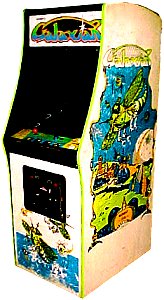 Galaxian was a relatively simple game to adapt for home play, but it didn't arrive in Atari 2600 form for several years. For quite a while, the only home version of Galaxian was Coleco's tabletop arcade game, which was a rather faithful rendition, right down to the arcade cabinet art, which looks like it fell off of a Yes album somewhere.